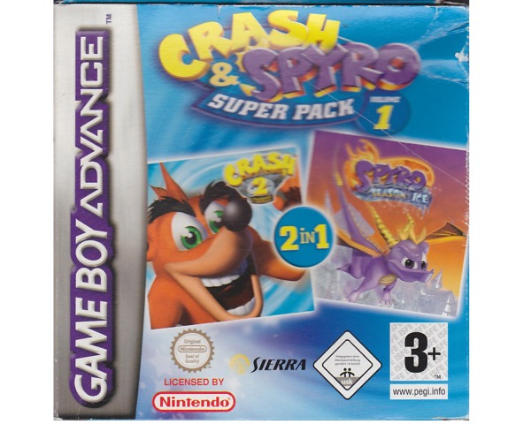 Crash & Spyro Superpack vol 1 m. kasse og manual (GBA)(forseglet)